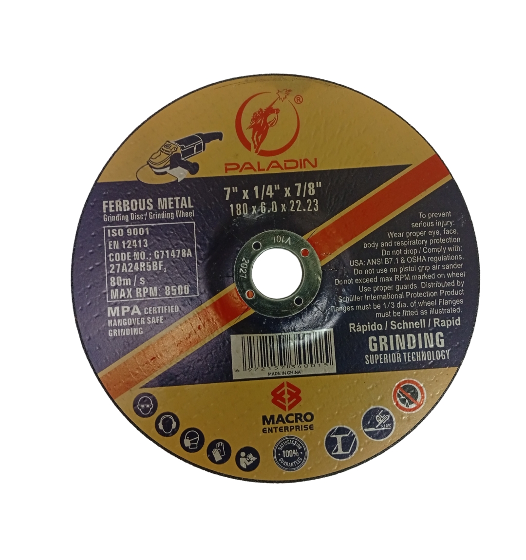 The Paladin Grinding Disc is engineered for precision, durability, and top performance. Made with superior febrious material, this grinding wheel is ideal for fast and efficient grinding of ferrous metals. Whether you’re in heavy industry, construction, or metal fabrication, the Paladin Grinding Disc delivers outstanding results every time.
